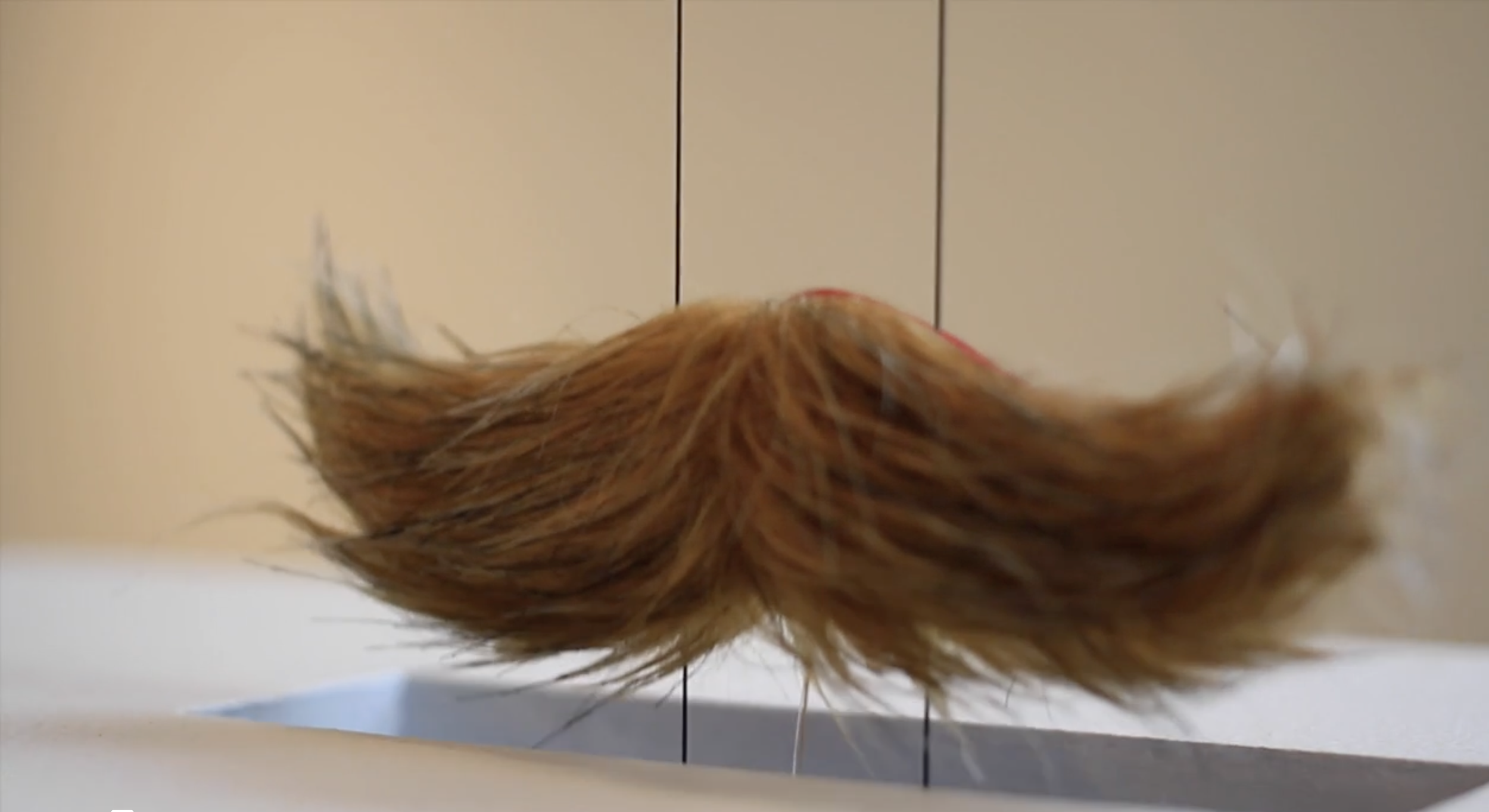 The Chevron and the Handlebar has one basic goal–to make the viewer smile. The clean white pedestal is meant to symbolize the way art is treated nowadays–we think art is holy and unworthy of touch and interaction. But it is not until the viewer interacts with it that the art appears. The art of the piece does not exist in the mustaches, it exists in the interaction between the two people as they line up the mustaches with each other and have a laugh. It is argued that these interactions we have with others is more art than a thing on a pedestal that someone deemed as “art.”